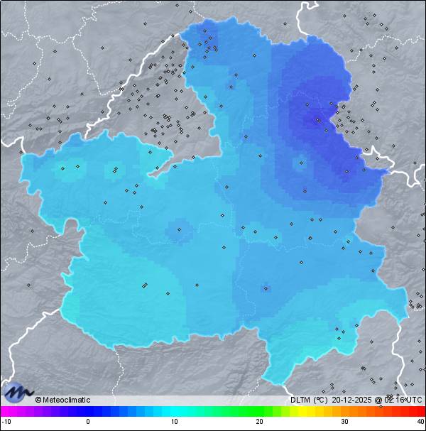 | Actualizado: 00:18 UTC | 6,9°C 95% | 7,6 °C / 95% | | 6,9°C / 94% | | Calma | | 3 km/h | | 1.018 hPa |