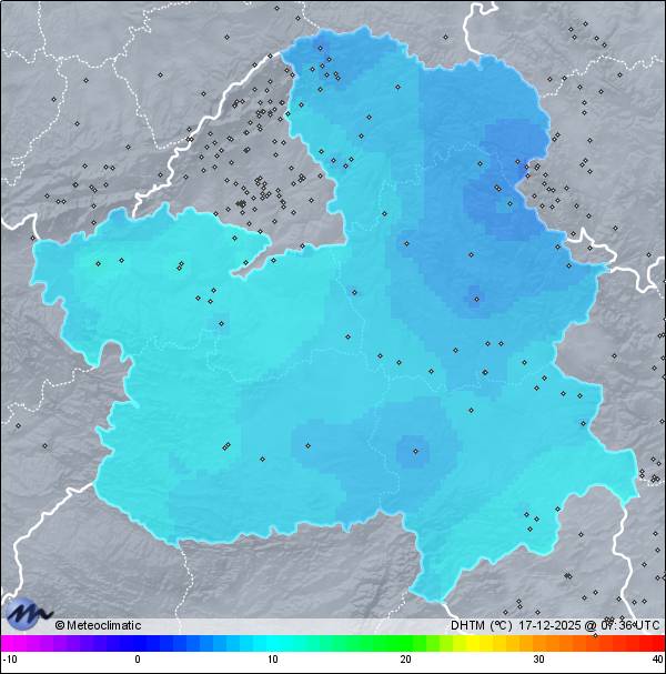 | Actualizado: 05:58 UTC | 9,1°C 84% | 9,9 °C / 86% | | 8,5°C / 83% | | 1.017 hPa |