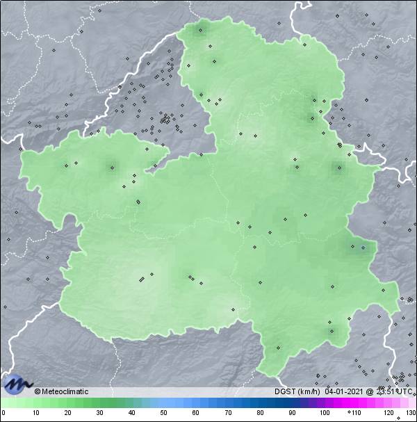 | 04-01-2021 | | | Máx. | Mín. | | | Temperatura | 7,8 | 0,4 | °C | | Humedad | 85 | 55 | % | | Viento | 23 | n/a | km/h | | Presión | 1.010 | 1.006 | hPa | | Precipitación | 0,0 | mm |