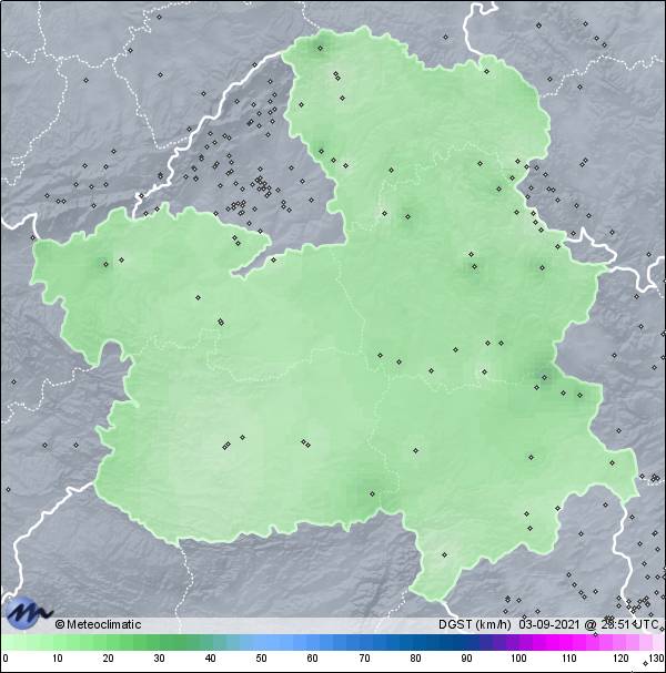 | 03-09-2021 | | | Máx. | Mín. | | | Temperatura | 24,9 | 12,4 | °C | | Humedad | 96 | 40 | % | | Viento | 22 | n/a | km/h | | Presión | 1.019 | 1.012 | hPa |
