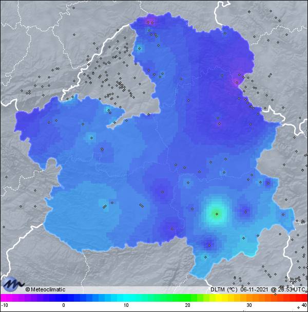 | 06-11-2021 | | | Máx. | Mín. | | | Temperatura | 6,0 | -5,7 | °C | | Humedad | 88 | 53 | % | | Viento | 45 | n/a | km/h | | Presión | 1.020 | 1.017 | hPa | | Precipitación | 0,4 | mm |
