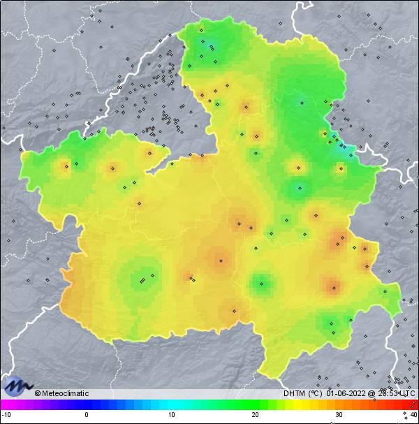 | 01-06-2022 | | | Máx. | Mín. | | | Temperatura | 29,3 | 17,7 | °C | | Humedad | 58 | 32 | % | | Precipitación | 0,0 | mm |