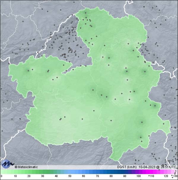 | 10-04-2023 | | | Máx. | Mín. | | | Temperatura | 25,8 | 10,1 | °C | | Viento | 55 | n/a | km/h | | Presión | 1.020 | 1.017 | hPa | | Precipitación | 0,0 | mm |
