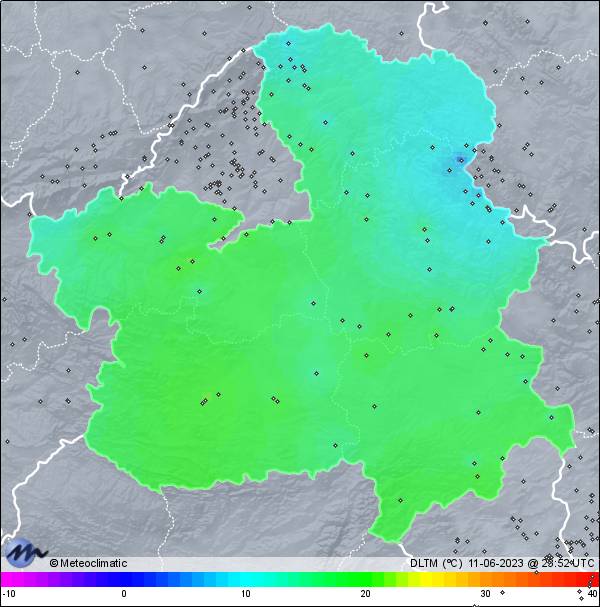 | 11-06-2023 | | | Máx. | Mín. | | | Temperatura | 22,9 | 10,0 | °C | | Humedad | 96 | 41 | % | | Viento | 24 | n/a | km/h | | Presión | 1.020 | 1.016 | hPa | | Precipitación | 6,4 | mm |