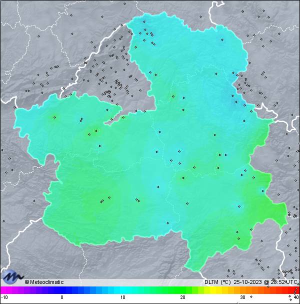 | 25-10-2023 | | | Máx. | Mín. | | | Temperatura | 12,6 | 7,6 | °C | | Humedad | 99 | 86 | % | | Viento | 29 | n/a | km/h | | Presión | 1.018 | 1.013 | hPa | | Precipitación | 10,4 | mm |