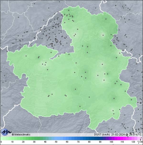 | 21-02-2024 | | | Máx. | Mín. | | | Temperatura | 13,4 | 6,0 | °C | | Humedad | 85 | 38 | % | | Viento | 28 | n/a | km/h | | Presión | 1.029 | 1.020 | hPa | | Precipitación | 0,0 | mm |