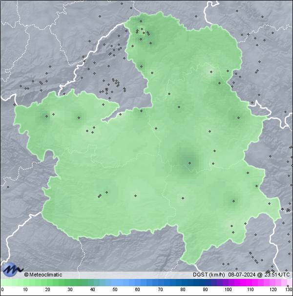 | 08-07-2024 | | | Máx. | Mín. | | | Temperatura | 29,1 | 16,0 | °C | | Humedad | 95 | 21 | % | | Viento | 32 | n/a | km/h | | Presión | 1.014 | 1.007 | hPa | | Precipitación | 0,0 | mm |