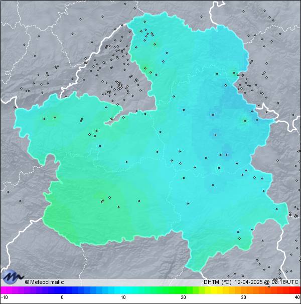 | 11-04-2025 | | | Máx. | Mín. | | | Temperatura | 15,4 | 5,9 | °C | | Humedad | 94 | 61 | % | | Viento | 18 | n/a | km/h | | Presión | 1.019 | 1.010 | hPa | | Precipitación | 0,0 | mm |