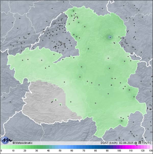 | 01-06-2025 | | | Máx. | Mín. | | | Temperatura | 30,1 | 14,1 | °C | | Humedad | 84 | 35 | % | | Viento | 42 | n/a | km/h | | Presión | 1.024 | 1.018 | hPa | | Precipitación | 0,0 | mm |