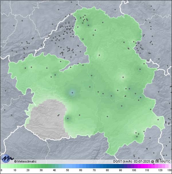 | 01-07-2025 | | | Máx. | Mín. | | | Temperatura | 29,5 | 8,3 | °C | | Humedad | 89 | 23 | % | | Viento | 11 | n/a | km/h | | Precipitación | 0,0 | mm |
