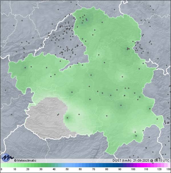 20-09-2025 | | Máx. | Mín. | | Temperatura | 27,9 | 14,8 | °C | Humedad | 90 | 37 | % | Viento | 39 | n/a | km/h | Presión | 1.019 | 1.013 | hPa | Precipitación | 0,0 | mm |