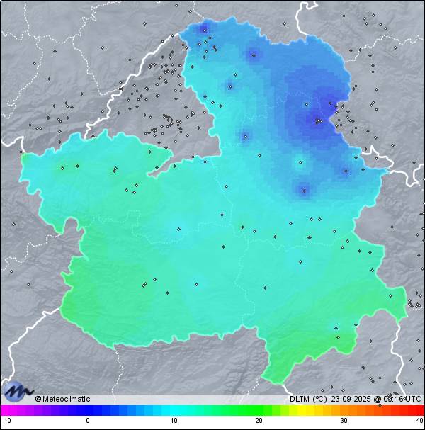 22-09-2025 | | Máx. | Mín. | | Temperatura | 22,3 | 10,4 | °C | Humedad | 54 | 26 | % | Precipitación | 0,0 | mm |