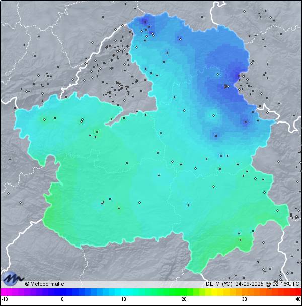23-09-2025 | | Máx. | Mín. | | Temperatura | 12,8 | -2,3 | °C | Humedad | 91 | 33 | % | Viento | 15 | n/a | km/h | Precipitación | 0,0 | mm |