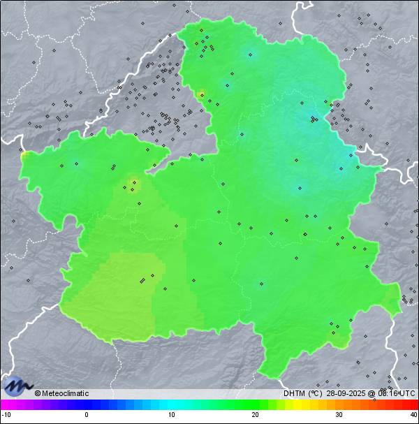 27-09-2025 | | Máx. | Mín. | | Temperatura | 28,7 | 8,0 | °C | Humedad | 75 | 26 | % | Viento | 15 | n/a | km/h | Presión | 1.023 | 1.017 | hPa | Precipitación | 0,0 | mm |