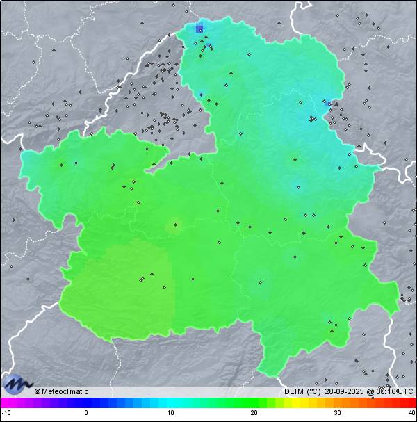 27-09-2025 | | Máx. | Mín. | | Temperatura | 20,1 | -1,9 | °C | Humedad | 85 | 23 | % | Viento | 18 | n/a | km/h | Precipitación | 0,0 | mm |