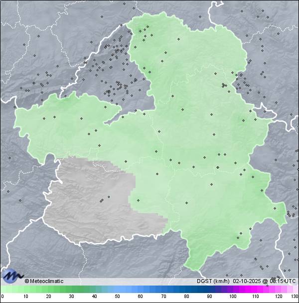 01-10-2025 | | Máx. | Mín. | | Temperatura | 19,4 | 1,2 | °C | Humedad | 97 | 41 | % | Viento | 11 | n/a | km/h | Precipitación | 0,0 | mm |