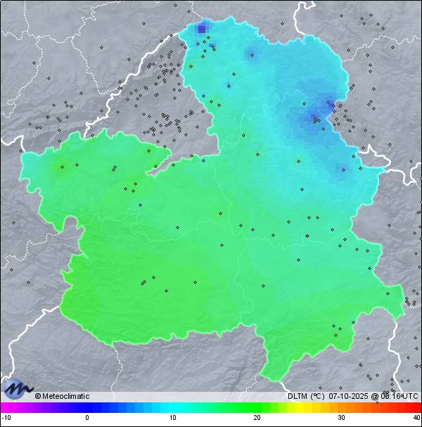 06-10-2025 | | Máx. | Mín. | | Temperatura | 20,2 | 6,9 | °C | Humedad | 95 | 65 | % | Viento | 26 | n/a | km/h | Precipitación | 0,0 | mm |
