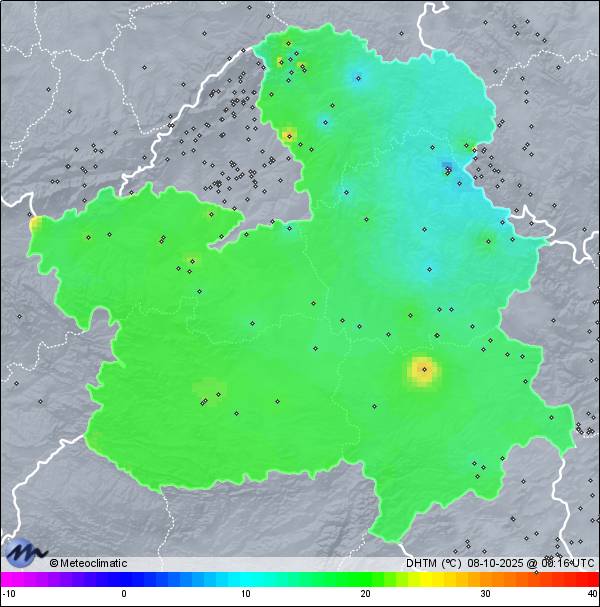 07-10-2025 | | Máx. | Mín. | | Temperatura | 29,5 | 10,4 | °C | Humedad | 90 | 38 | % | Viento | 13 | n/a | km/h | Presión | 1.024 | 1.020 | hPa |