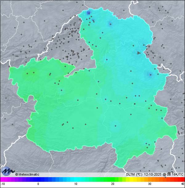 11-10-2025 | | Máx. | Mín. | | Temperatura | 13,4 | 6,3 | °C | Humedad | 96 | 78 | % | Viento | 5 | n/a | km/h | Presión | 1.026 | 1.023 | hPa | Precipitación | 0,0 | mm |