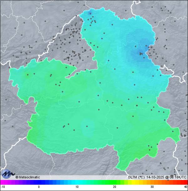 13-10-2025 | | Máx. | Mín. | | Temperatura | 18,2 | 9,6 | °C | Humedad | 96 | 65 | % | Viento | 23 | n/a | km/h | Presión | 1.017 | 1.012 | hPa |
