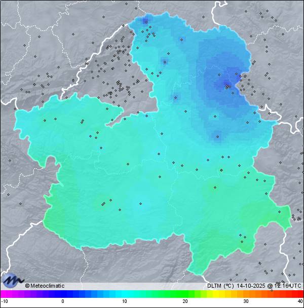Actualizado: 09:03 UTC | 13,0°C 85% | 13,0 °C / 98% |  | 5,7°C / 85% | | 2 km/h SSE | 16 km/h | 1.022 hPa | 0,2 mm |