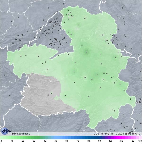 15-10-2025 | | Máx. | Mín. | | Temperatura | 21,5 | 11,0 | °C | Humedad | 99 | 45 | % | Viento | 18 | n/a | km/h | Presión | 1.020 | 1.013 | hPa | Precipitación | 0,0 | mm |