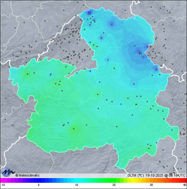 18-10-2025 | | Máx. | Mín. | | Temperatura | 21,6 | 1,7 | °C | Humedad | 96 | 42 | % | Viento | 21 | n/a | km/h | Presión | 1.025 | 1.022 | hPa | Precipitación | 0,0 | mm |