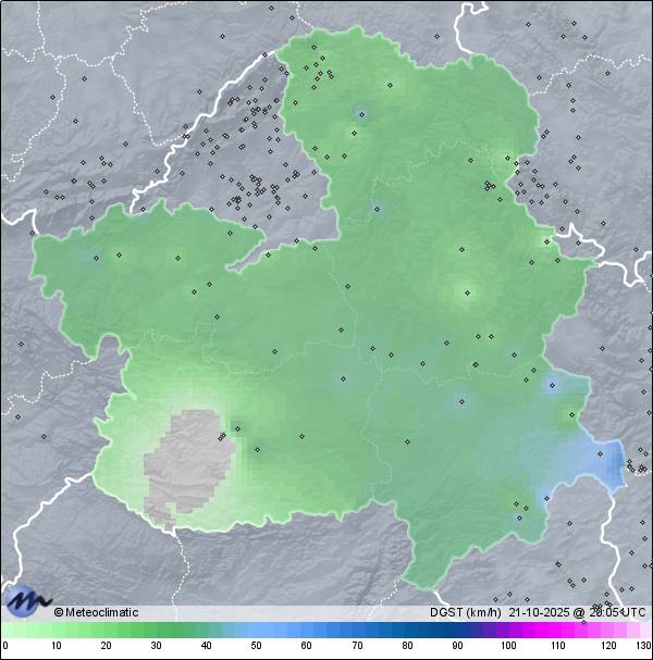 Actualizado: 10:47 UTC | 19,2°C 67% | 19,4 °C / 80% | 13,9°C / 59% | | 21 km/h ENE | 47 km/h | 1.009 hPa | 1,4 mm |