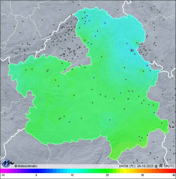 | 23-10-2025 | | | Máx. | Mín. | | | Temperatura | 16,0 | 8,1 | °C | | Humedad | 87 | 36 | % | | Viento | 36 | n/a | km/h | | Presión | 1.019 | 1.010 | hPa | | Precipitación | 2,1 | mm |