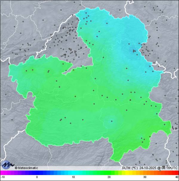 | 23-10-2025 | | | Máx. | Mín. | | | Temperatura | 16,0 | 8,1 | °C | | Humedad | 87 | 36 | % | | Viento | 36 | n/a | km/h | | Presión | 1.019 | 1.010 | hPa | | Precipitación | 2,1 | mm |
