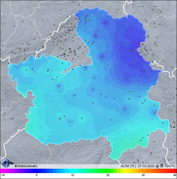 | 26-10-2025 | | | Máx. | Mín. | | | Temperatura | 9,7 | -0,8 | °C | | Humedad | 95 | 70 | % | | Viento | 3 | n/a | km/h | | Presión | 1.024 | 1.013 | hPa | | Precipitación | 8,0 | mm |