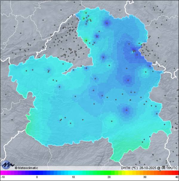 | 27-10-2025 | | | Máx. | Mín. | | | Temperatura | 6,5 | 3,7 | °C | | Humedad | 84 | 78 | % | | Viento | 3 | n/a | km/h | | Presión | 1.022 | 1.021 | hPa | | Precipitación | 0,0 | mm |