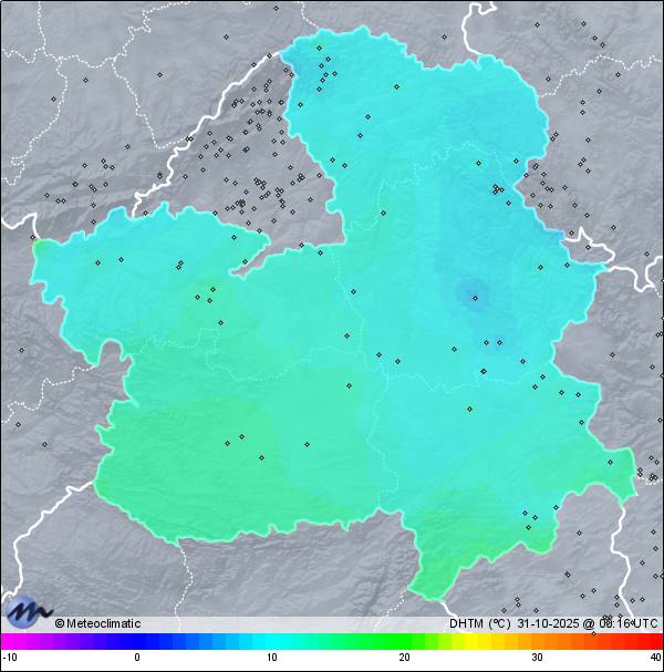 | 30-10-2025 |  |  | Máx. | Mín. |  |  | Temperatura | 10,7 | 5,6 | °C |  | Humedad | 92 | 83 | % |  | Viento | 11 | n/a | km/h |  | Presión | 1.019 | 1.013 | hPa |  | Precipitación | 0,0 | mm |