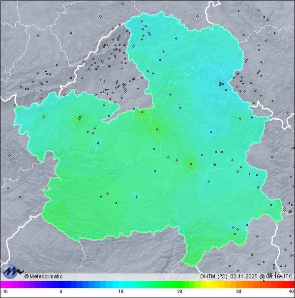 | 01-11-2025 | | | Máx. | Mín. | | | Temperatura | 13,2 | 9,7 | °C | | Humedad | 99 | 88 | % | | Viento | 37 | n/a | km/h | | Presión | 1.021 | 1.017 | hPa | | Precipitación | 0,0 | mm |