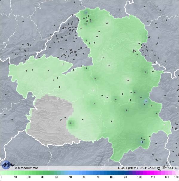 | Actualizado: 19:25 UTC | 13,0°C 72% | 18,6 °C / 97% | | 11,7°C / 48% | | 5 km/h WNW | | 48 km/h | | 1.021 hPa | | 0,2 mm |