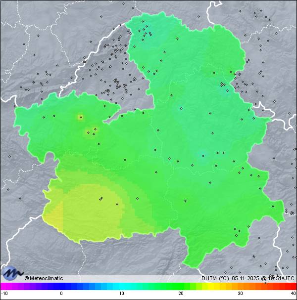 | Actualizado: 17:40 UTC | 14,6°C 89% | 16,5 °C / 96% | | 11,2°C / 76% | | 11 km/h NNE | | 29 km/h | | 1.013 hPa | | 0,2 mm |