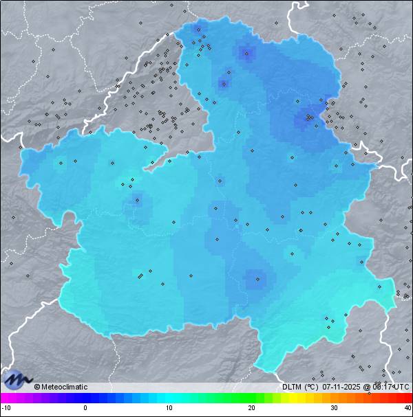 | 06-11-2025 | | | Máx. | Mín. | | | Temperatura | 7,4 | 3,1 | °C | | Humedad | 97 | 85 | % | | Viento | 17 | n/a | km/h | | Precipitación | 0,0 | mm |