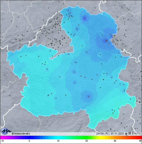 | Actualizado: 04:13 UTC | 2,8°C 90% | 5,3 °C / 95% | | 1,4°C / 80% | | Calma | | 7 km/h | | 1.017 hPa |