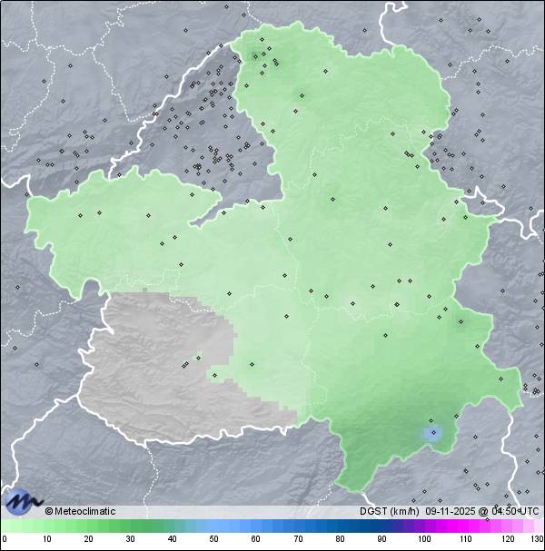 | Actualizado: 02:50 UTC | 5,3°C 84% | 6,0 °C / 87% |  | | 4,7°C / 83% | | 4 km/h SE | | 8 km/h | | 1.023 hPa |