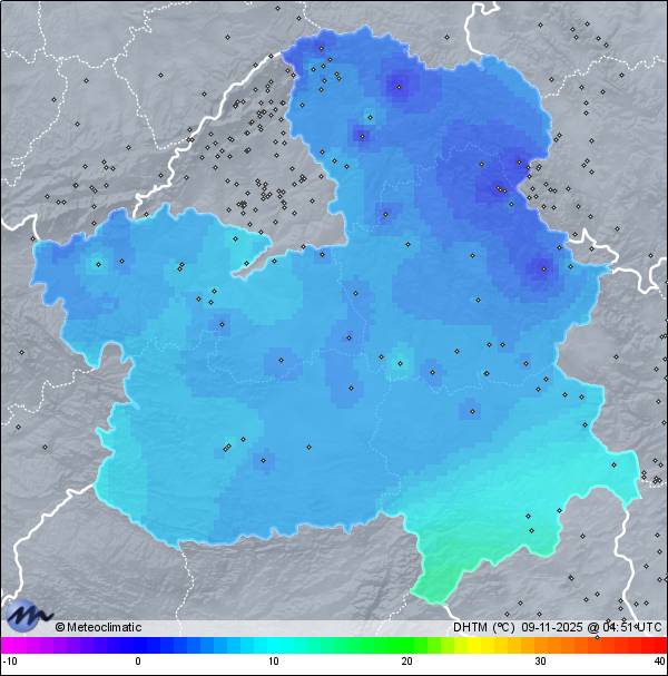 | Actualizado: 02:50 UTC | 5,3°C 84% | 6,0 °C / 87% |  | | 4,7°C / 83% | | 4 km/h SE | | 8 km/h | | 1.023 hPa |