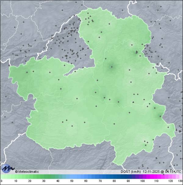 | Actualizado: 01:13 UTC | 10,6°C 70% | 11,1 °C / 70% | | 10,5°C / 66% | | 6 km/h SE | | 22 km/h | | 1.015 hPa |