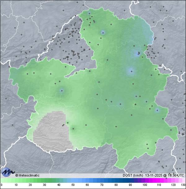 | Actualizado: 12:13 UTC | 17,1°C 58% | 17,2 °C / 93% | | 5,9°C / 56% | | 11 km/h SE | | 30 km/h | | 1.018 hPa |