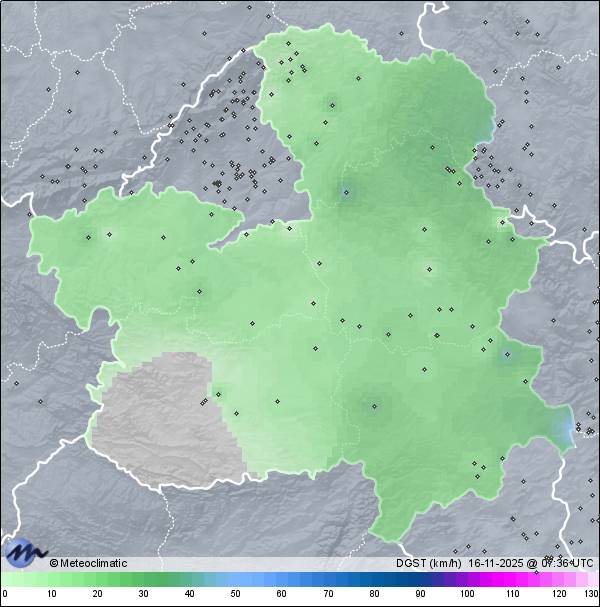 | Niebla | | Actualizado: 05:42 UTC | 3,6°C 96% | 9,2 °C / 96% | | 2,8°C / 96% | | Calma | | 19 km/h | | 1.011 hPa | | 0,4 mm |