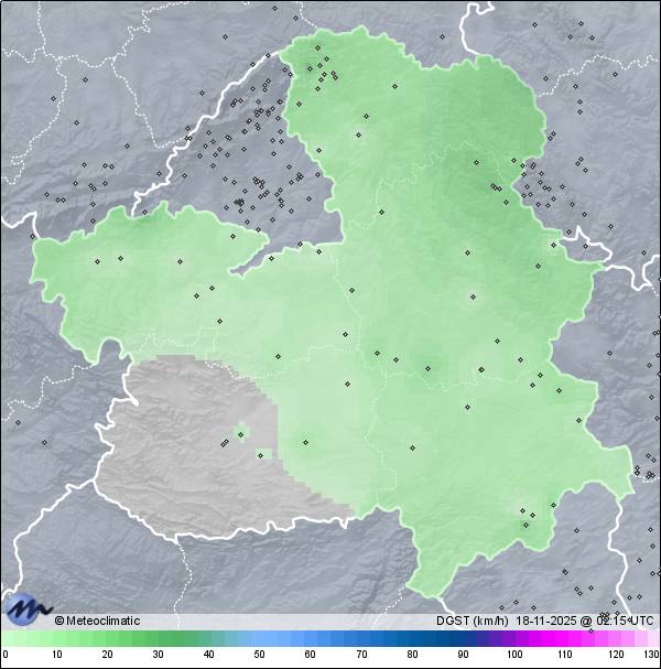 | Actualizado: 00:18 UTC | 7,4°C 95% | 7,5 °C / 96% |  | | 6,8°C / 94% | | Calma | | 4 km/h | | 1.017 hPa |
