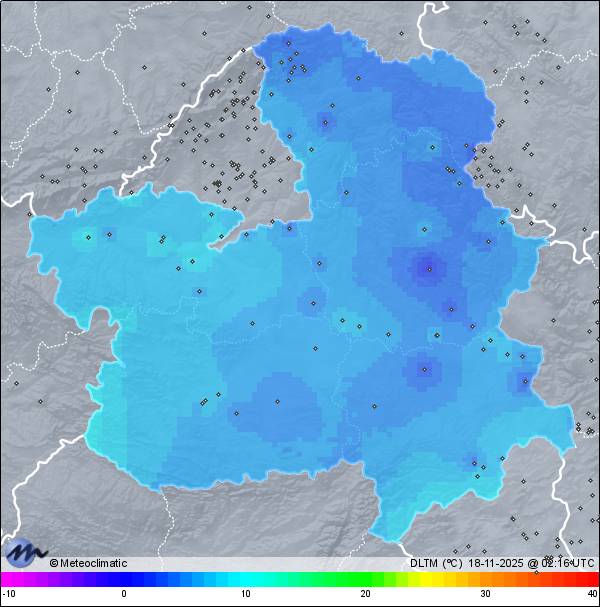 | Actualizado: 00:18 UTC | 7,4°C 95% | 7,5 °C / 96% |  | | 6,8°C / 94% | | Calma | | 4 km/h | | 1.017 hPa |