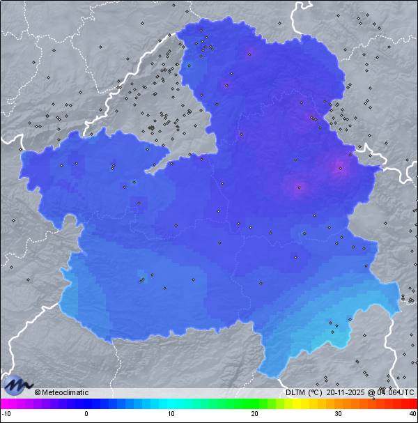 | Actualizado: 01:55 UTC | 3,6°C 85% | 3,9 °C / 85% | | 3,4°C / 78% | | 6 km/h N | | 16 km/h | | 1.016 hPa |