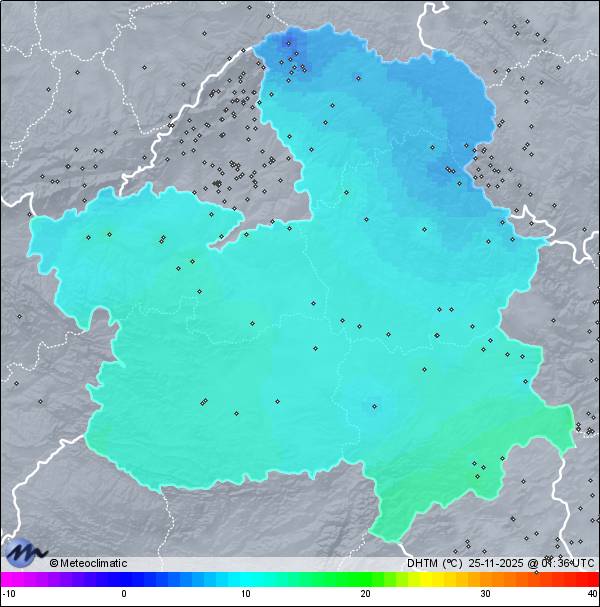 | Actualizado: 00:11 UTC | 12,1°C 91% | 12,2 °C / 91% | | 12,1°C / 91% |