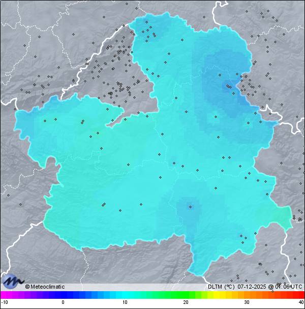 | Actualizado:06-12-2025 23:47 UTC | 10,3°C 89% | 17,1 °C / 94% | | 7,0°C / 63% | | Calma | | 16 km/h | | 1.024 hPa |