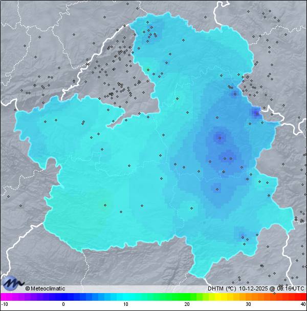 | Escarcha | | Actualizado: 03:58 UTC | -1,9°C 91% | 0,0 °C / 95% | | -2,4°C / 77% | | Calma | | 9 km/h | | 1.025 hPa |