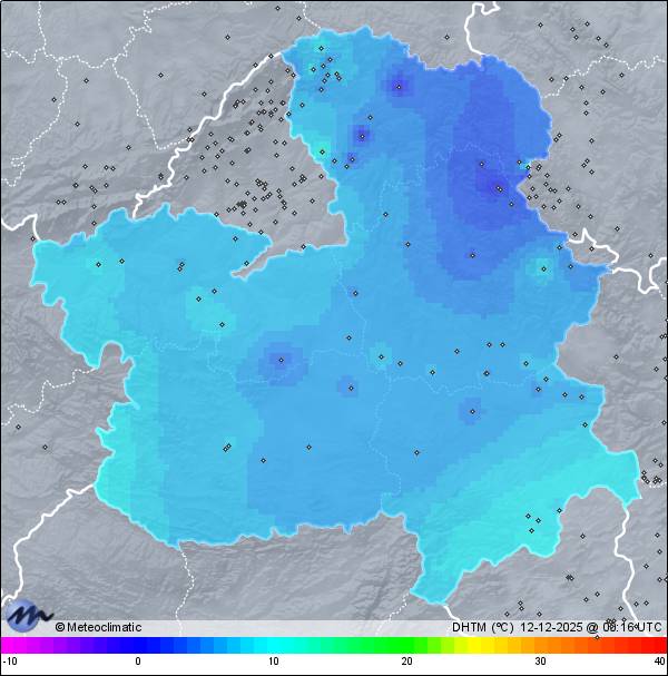 | Niebla heladora | | Actualizado: 05:58 UTC | -2,9°C 99% | 0,5 °C / 99% |  | | -3,6°C / 96% | | Calma | | 4 km/h | | 1.031 hPa |